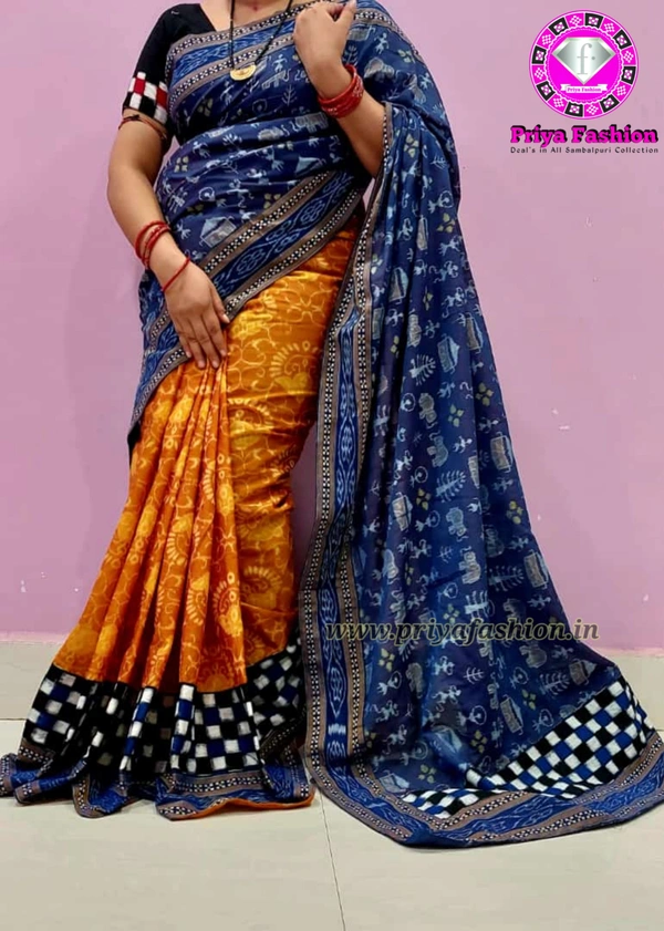 This sambalpuri patchwork Saree gives a bright look to anyone who wear it... The product has been made by Priya Fashion and given branded stitching & won New Design...Stay stylish with tradition.Perfect for your everyday use, hand-woven fantasy, the Sambalpuri patchwork saree is a reflection of its stimulating traditional roots and artistic intricacy. An elegant illustration of the glories of past with contemporary chicness, the Sambalpuri patchwork saree will transform any woman into an artist’s muse.The Journey of Sambalpuri: The Saga of an Unending Saree The story of Sambalpuri weaves is one of mythology and magic. With its roots dipped in the Indian epics and tradition, the Sambalpuri weaves have lasted the test of time owing to the extraordinary craftsmanship of the weavers. It is believed by Padmashree Haldhar Nag, an eminent poet from Odisha that Krishna draped the Sambalpuri around Draupadi, a saree so long that it had no end. Praised for the immaculate artistry, the Sambalpuri makers are dwellers of Orissa. Unique in the making and exquisite in its designs, the Sambalpuri weave reflects an ancient handicraft called BandhaKala. The yarns are tied in accordance with the desired pattern to prevent absorption of dyes in the other areas. It is then dyed with colours that are made by the artisans. The weaves are praised for their vibrant colours and intricate designs, often inspired by the traditional motifs seen occurring at the major temples of Odisha. More recently, the makers are experimenting with the themes and colours for an enhanced contemporary appeal...