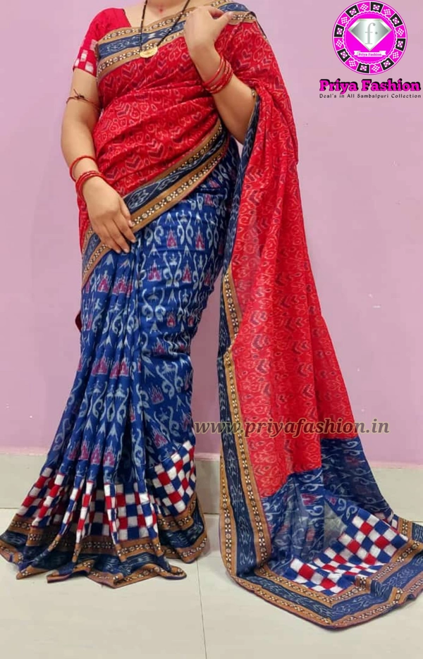 This sambalpuri patchwork Saree gives a bright look to anyone who wear it... The product has been made by Priya Fashion and given branded stitching & won New Design...Stay stylish with tradition.Perfect for your everyday use, hand-woven fantasy, the Sambalpuri patchwork saree is a reflection of its stimulating traditional roots and artistic intricacy. An elegant illustration of the glories of past with contemporary chicness, the Sambalpuri patchwork saree will transform any woman into an artist’s muse.The Journey of Sambalpuri: The Saga of an Unending Saree The story of Sambalpuri weaves is one of mythology and magic. With its roots dipped in the Indian epics and tradition, the Sambalpuri weaves have lasted the test of time owing to the extraordinary craftsmanship of the weavers. It is believed by Padmashree Haldhar Nag, an eminent poet from Odisha that Krishna draped the Sambalpuri around Draupadi, a saree so long that it had no end. Praised for the immaculate artistry, the Sambalpuri makers are dwellers of Orissa. Unique in the making and exquisite in its designs, the Sambalpuri weave reflects an ancient handicraft called BandhaKala. The yarns are tied in accordance with the desired pattern to prevent absorption of dyes in the other areas. It is then dyed with colours that are made by the artisans. The weaves are praised for their vibrant colours and intricate designs, often inspired by the traditional motifs seen occurring at the major temples of Odisha. More recently, the makers are experimenting with the themes and colours for an enhanced contemporary appeal...