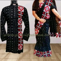 102265 Sambalpuri Handloom Cotton Couple Dress Long Kurta And Saree With Blause