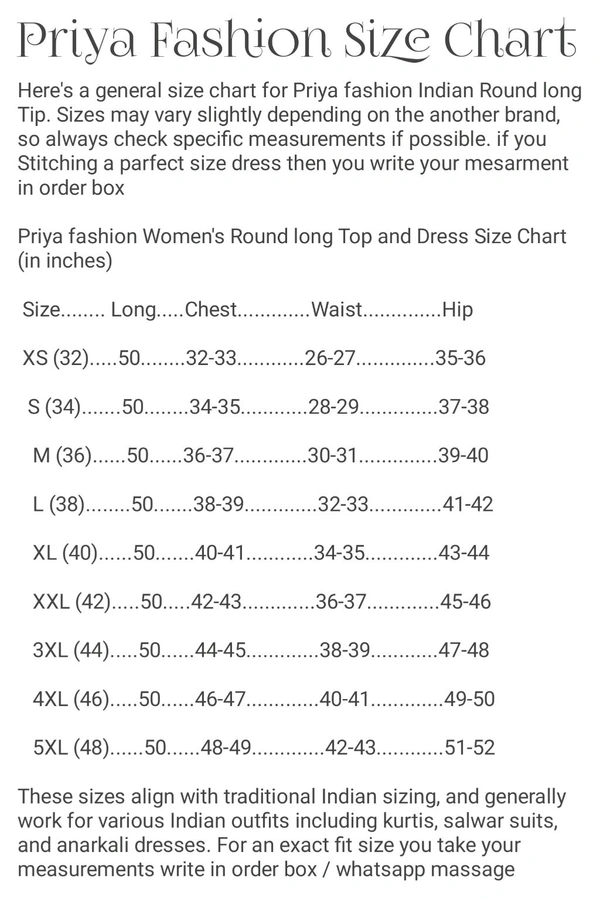 An amazing range of women kurta in soft and solid colors that looks perfect for regular wear. With beautiful designs and patterns. These apparels are very stylish and comfortable too. Get rid of the 'regular' look this season wearing Suit Set by Priya Fashion. With a perfect blend of comfort and traditional style, This Cotton long Round Anarkali Kurti From Priya Fashion embellished with Buttons. Stiching from Priya Fashion Boutique....