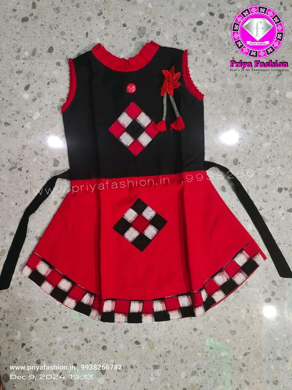 Introduce your kids to the charm of Odisha’s rich handloom heritage with our Sambalpuri Kids Dress. Designed in a vibrant red and black color combination, this dress combines style with tradition.
