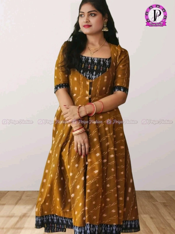 This sambalpuri Round kurti  gives a bright look to anyone who wear it... The product has been made by Priya Fashion and given branded stitching & won New Design...Stay stylish with tradition. Sambalpuri kurti is a traditional handwoven garment originating from the Sambalpur region in Odisha, India. These kurtis are known for their vibrant colors and unique ikat patterns created through a tie-dye resist technique. They showcase the rich cultural heritage of the region and are popular for both casual and festive wear...