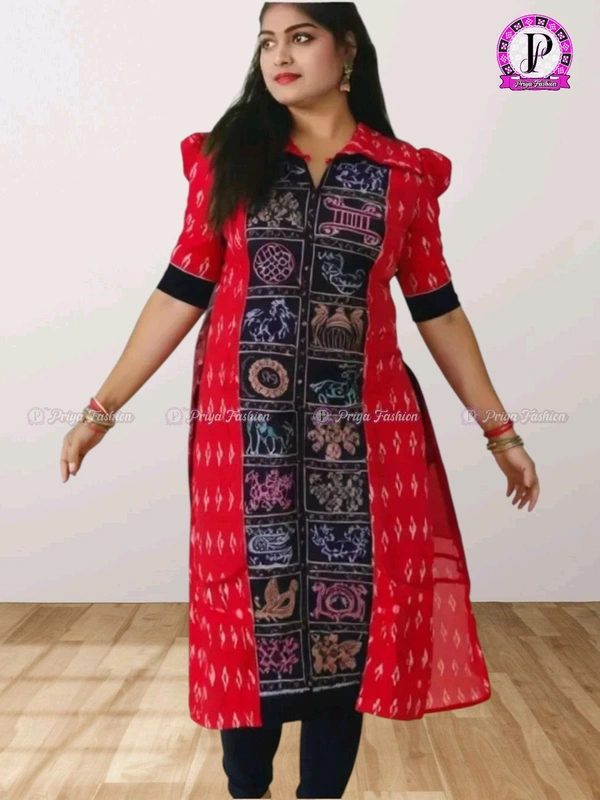 An amazing range of women kurti in soft and solid colors that looks perfect for regular wear. With beautiful designs and patterns. These apparels are very stylish and comfortable too. Get rid of the 'regular' look this season wearing Suit Set by Priya Fashion. With a perfect blend of comfort and traditional style, This Sambalpuri Cotton Kurti From Priya Fashion embellished with Buttons. Stiching from Priya Fashion Boutique...