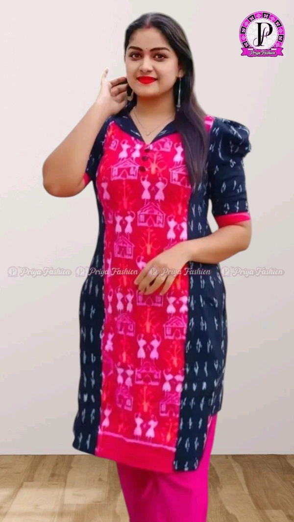 An amazing range of women kurti in soft and solid colors that looks perfect for regular wear. With beautiful designs and patterns. These apparels are very stylish and comfortable too. Get rid of the 'regular' look this season wearing Suit Set by Priya Fashion. With a perfect blend of comfort and traditional style, This Sambalpuri Cotton Kurti From Priya Fashion embellished with Buttons. Stiching from Priya Fashion Boutique...