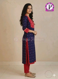 An amazing range of women kurti in soft and solid colors that looks perfect for regular wear. With beautiful designs and patterns. These apparels are very stylish and comfortable too. Get rid of the 'regular' look this season wearing Suit Set by Priya Fashion. With a perfect blend of comfort and traditional style, This Sambalpuri Cotton Kurti From Priya Fashion embellished with Buttons. Stiching from Priya Fashion Boutique...