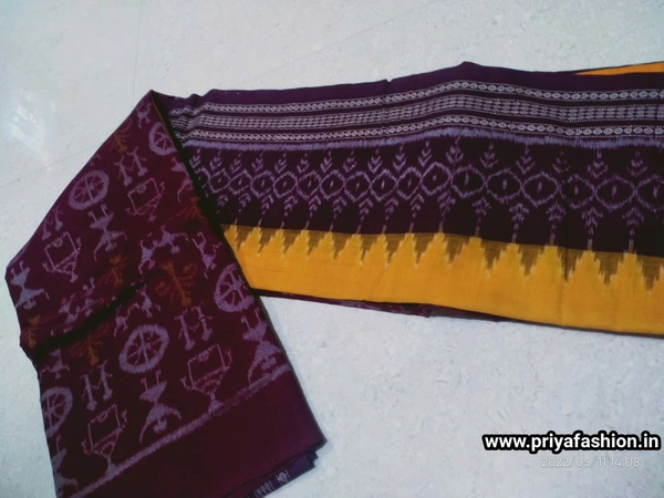 Material Fine quality pure handwoven sambalpuri ikat cotton 3-piece suit material set with traditional motifs like shankha (shell), chakra (wheel), phula (flower) woven by the master weavers of Sambalpur, Odisha.