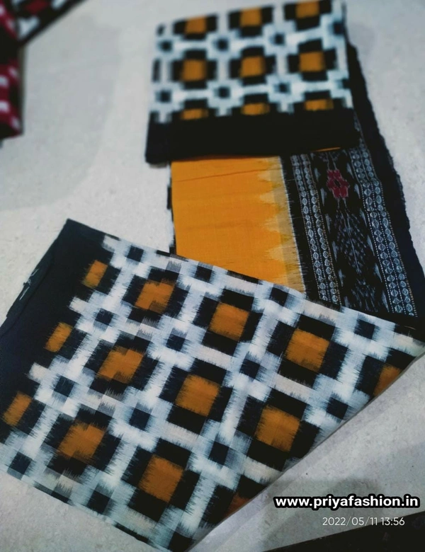 Material Fine quality pure handwoven sambalpuri ikat cotton 3-piece suit material set with traditional motifs like shankha (shell), chakra (wheel), phula (flower) woven by the master weavers of Sambalpur, Odisha.