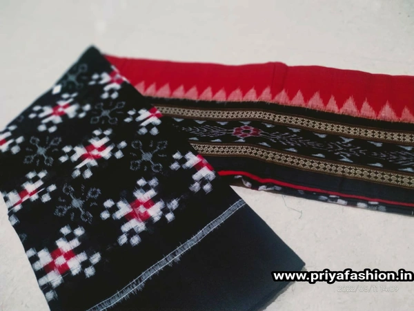 Material Fine quality pure handwoven sambalpuri ikat cotton 3-piece suit material set with traditional motifs like shankha (shell), chakra (wheel), phula (flower) woven by the master weavers of Sambalpur, Odisha.