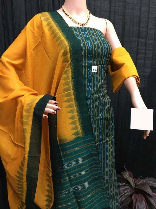 Name : Original Fabrics Pure Cotton Green Sambalpuri Ikat Unstitched Suit With Dupatta